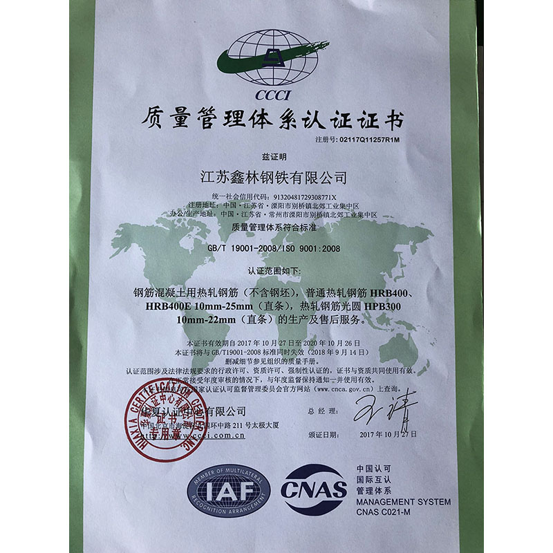 質(zhì)量管理體系認(rèn)證證書